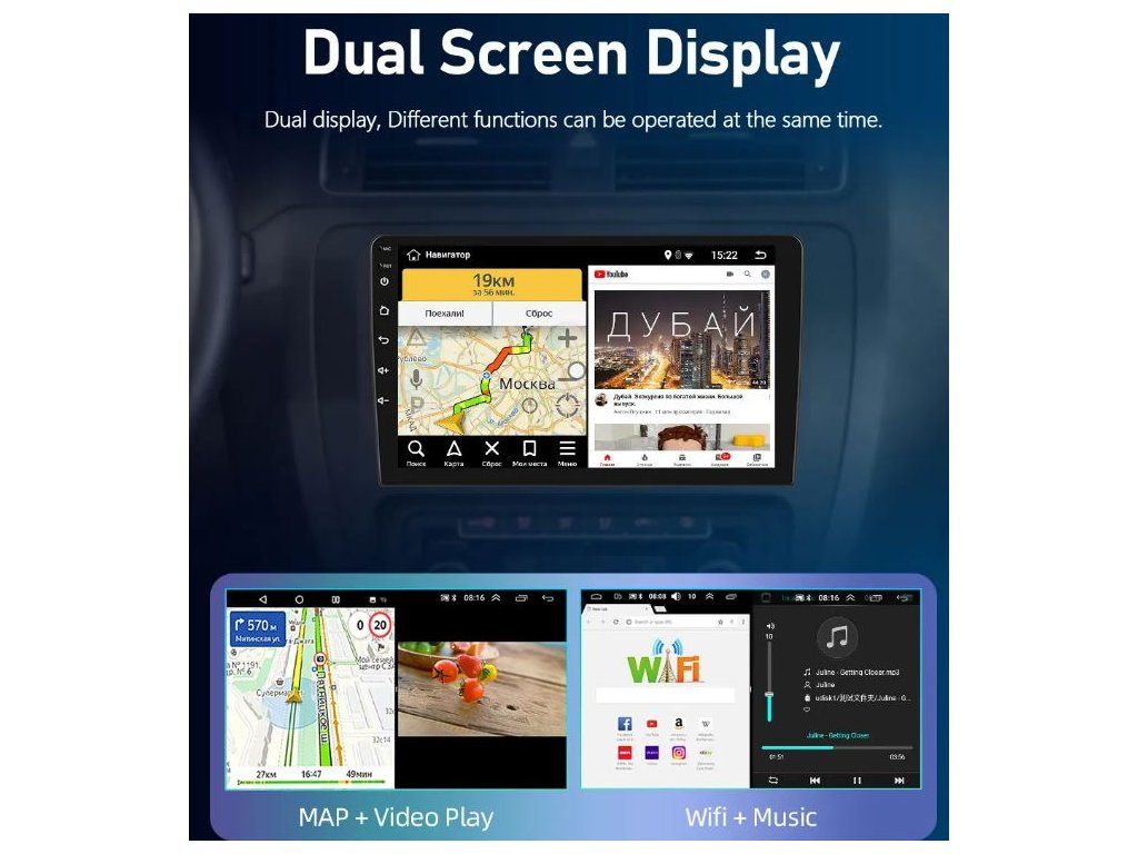 ●Funkce rozdělené obrazovky: lze zobrazit dvě stránky současně, například zobrazení navigace a hudby současně