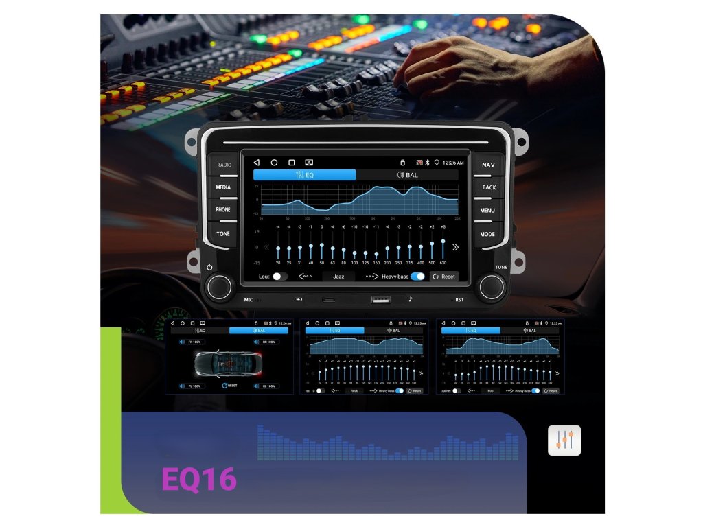 Nová verze toho rádia nabízí dostatečně velkou paměť 64GB pro vaše aplikace, hudbu i videa, operační paměť 2GB aby rádio nemělo problém s plynulostí a Android 15 s novými funkcemi, vylepšené umístění USB zásuvek na panelu rádia.