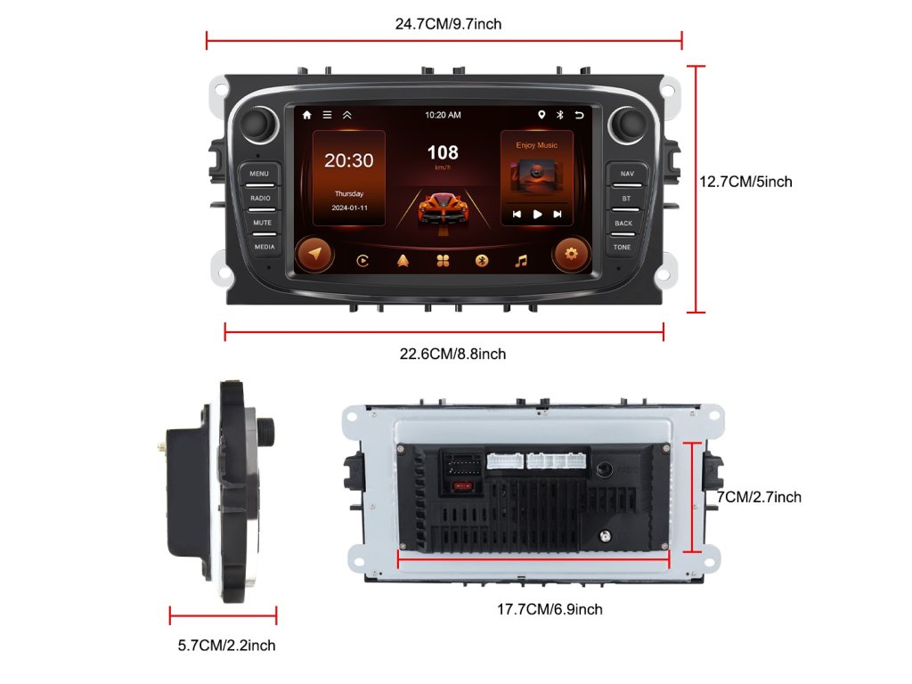 Podofo A3722BK Autorádio Ford
