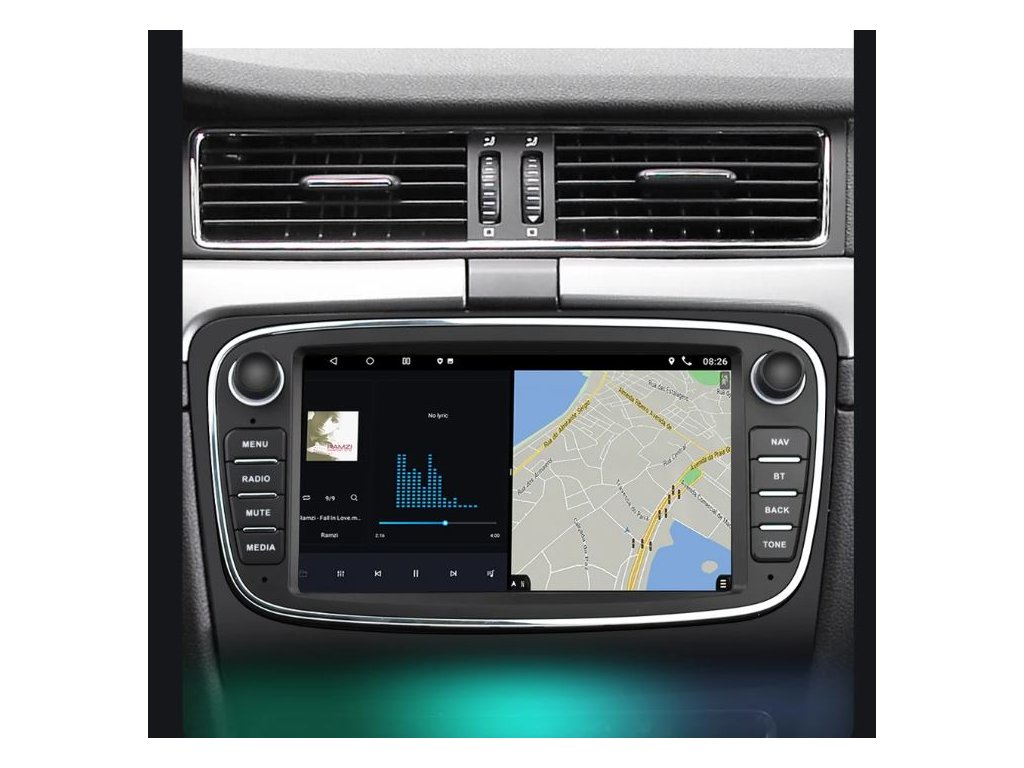 ●Funkce rozdělené obrazovky: lze zobrazit dvě stránky současně, například zobrazení navigace a hudby současně