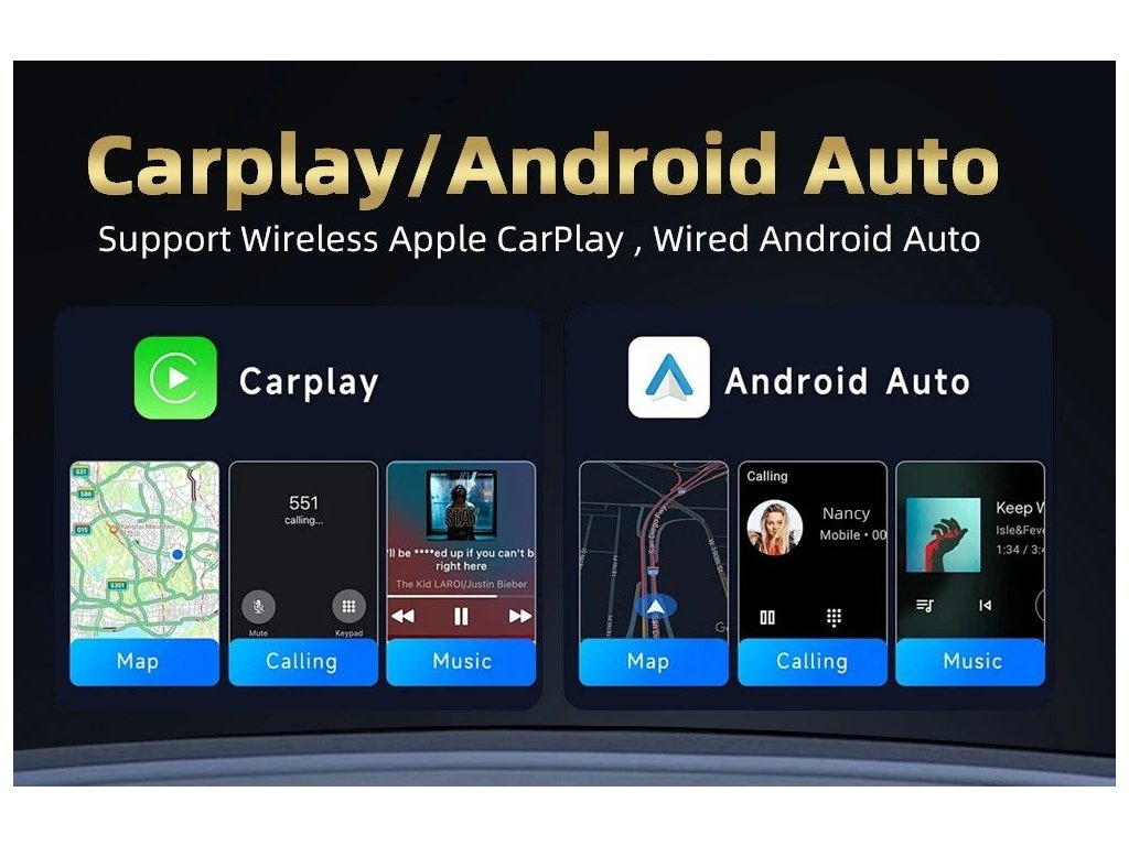 ● Bezdrátový Carplay/Android Auto: Uživatelé, kteří používají Carplay, se mohou připojit k systému automobilu prostřednictvím datového kabelu nebo bezdrátově a dosáhnout tak plného propojení mobilního telefonu a autorádia, zejména vhodné pro navigaci, strémování hudby (Spotify, Youtube, a další)